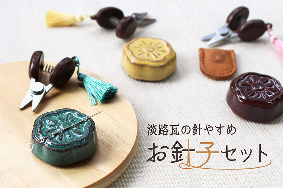 セットには、淡路瓦の針やすめ(限定色)、人気の豆ばさみ、そして糸と針をセレクト。手元に置いて、愛でていたくなる、美しい佇まいも魅力です。