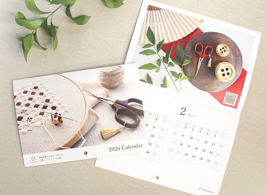 楽しみにしてくださっているお客様も多い Cohanaオリジナルカレンダー 2026をプレゼントでご用意いたしました。予定なども書き込めるA4サイズです。