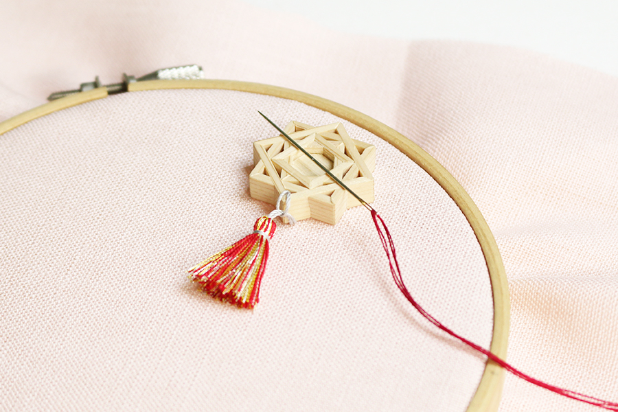 日本の木工技術「組子」の美しさを生かしたニードルマインダー。針を休ませるひとときにも、静かな存在感を感じられる道具です。