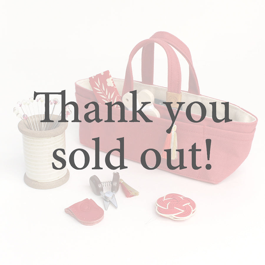 人気の帆布の豆道具入れに、元気をくれる「あかいろ」の道具をセットしました 。 革のケースとタッセルが限定色の「関の豆ばさみ」 や「飯田水引の糸通し」 など、手元に置くだけで気分が上がる、コンパクトなお裁縫セットです。