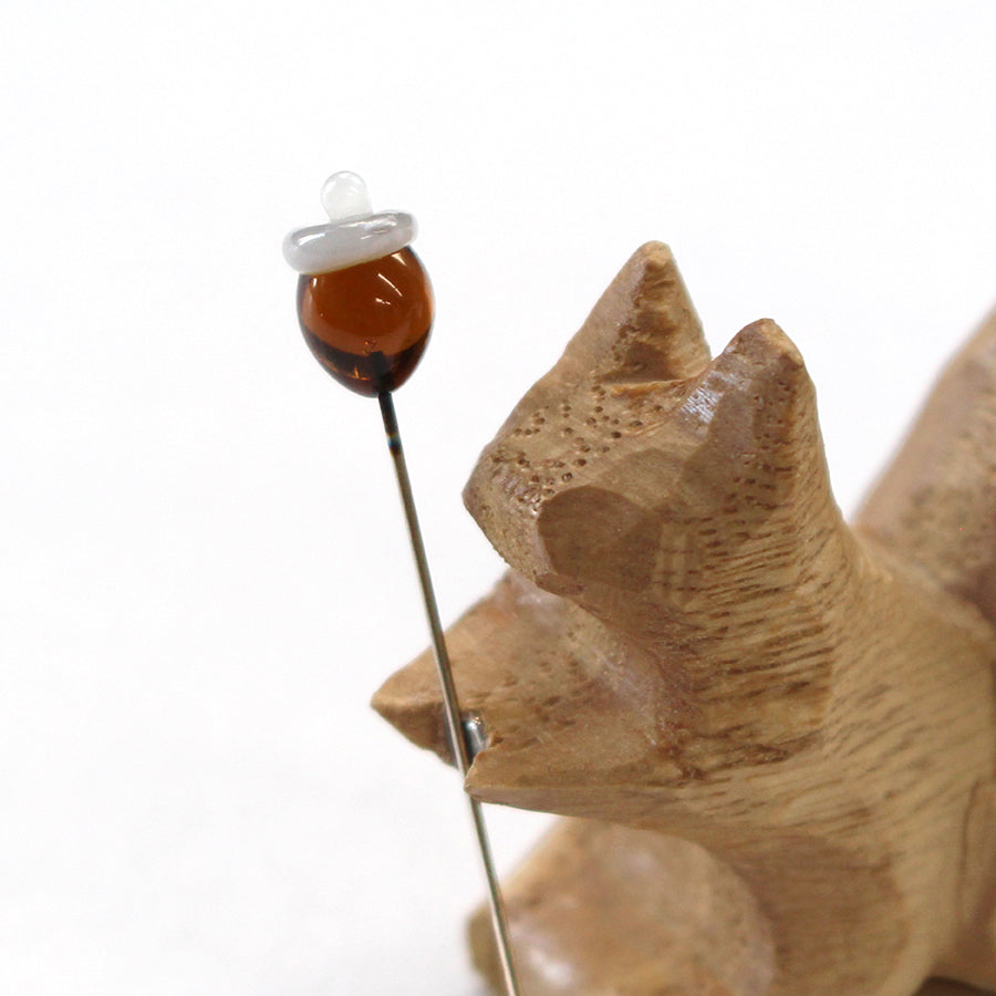 そんなコリスが両手で大切そうに抱えているのは、ガラスでできた小さなどんぐりの待針。まるでとっておきの宝物を、あなたに「どうぞ」と差し出してくれているようです 。