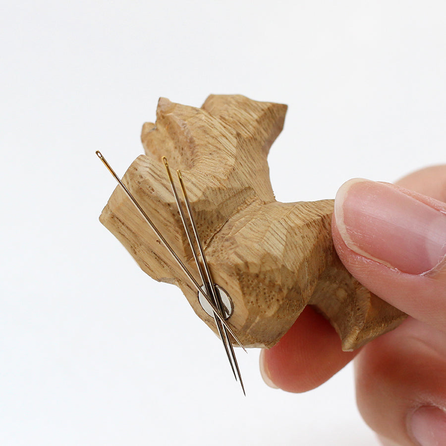 裏側にも磁石が埋め込まれているので、机に落ちた針も拾ってくれる働き者。あなたのお裁縫時間をそばでそっと見守ります。