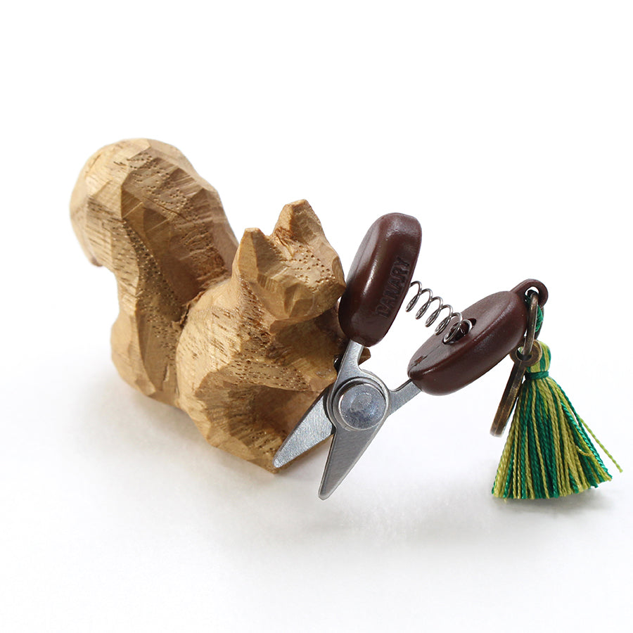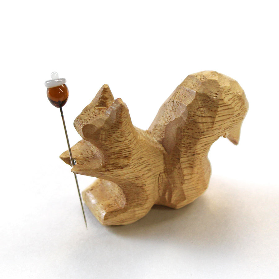 木彫りのリスの針やすめです。CohanaのCoとリスを組み合わせ、コリス。Coの「いっしょに」という意味もふまえて、あなたのお裁縫時間の良いおともとなるように、想いを込めてコリスと名付けました。