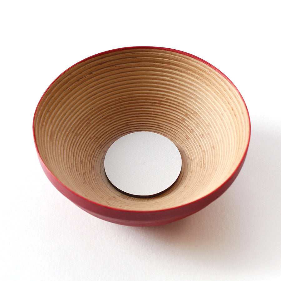 赤りんごの小物入れ:天然木(ブナ材) ウレタン塗装仕上げ ポリエステル・ポリウレタン ポリ塩化ビニル・アクリル酸エステル共重合物・フタル酸ジイソノニル・酸化チタン・カーボンブラック・離形紙