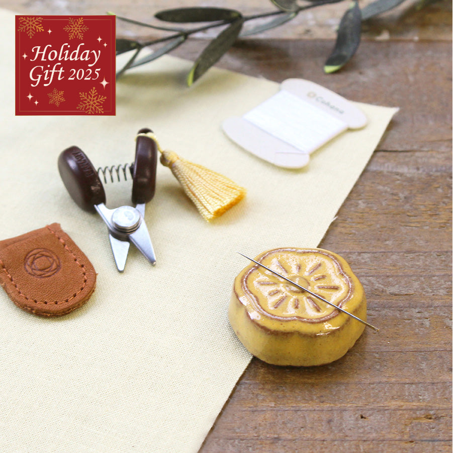 淡路瓦の針やすめと豆ばさみの、かわいいお針子セット