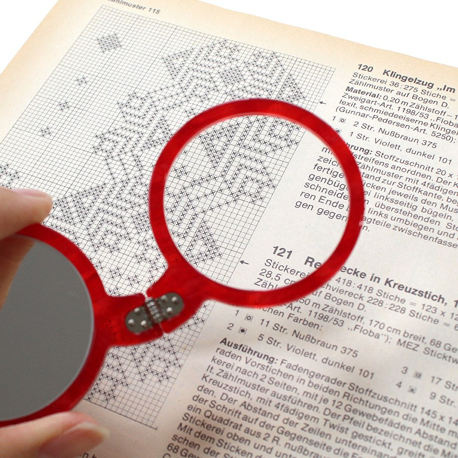 高品質なレンズは、針の穴のような微細な一点を見つめる作業でも、酔いにくく、ピントが合わせやすいのが特徴です。 針穴の状態確認や、針目を数えるとき、細かな図案を確かめたいときに。目を凝らす時間をやさしく支え、長く続く手づくりの時間を快適にしてくれます。
